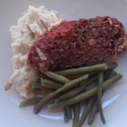 4Bake in preheated oven until meat is no longer pink and ketchup forms a glaze over the meatloaf, 1 1/2 hours. Let stand 10 minutes before serving.
