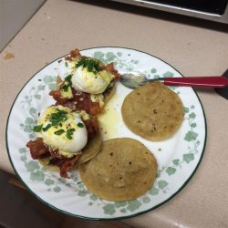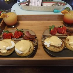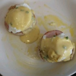 "Hot buttered English muffins, Canadian-style bacon, and poached eggs are topped with a heavenly drizzle of hollandaise sauce. Wonderful for Easter, Mother's Day, or anytime you want to treat yourself to the best brunch in the world! Serve with roasted potatoes for mopping up the extra egg yolk and hollandaise. If you prefer, you can substitute ham for the Canadian bacon in this recipe."