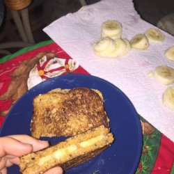 1Heat a skillet or griddle over medium heat, and coat with cooking spray. Spread 1 tablespoon of peanut butter onto one side of each slice of bread. Place banana slices onto the peanut buttered side of one slice, top with the other slice and press together firmly. Fry the sandwich until golden brown on each side, about 2 minutes per side.