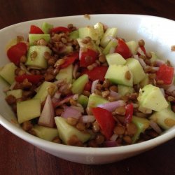 "A refreshing salad made with diced vegetables and lentils, perfect for a side dish or on its own. To add more freshness, add chopped mint to the salad."