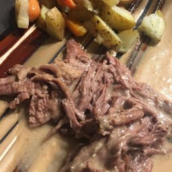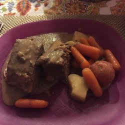 "This is a very easy recipe for a delicious pot roast. It makes its own gravy. It's designed especially for the working person who does not have time to cook all day, but it tastes like you did. You'll want the cut to be between 5 and 6 pounds."