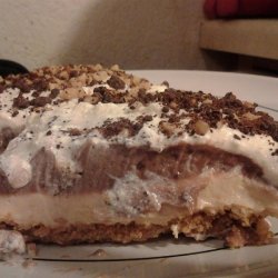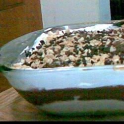 3Mix the pudding mixes and milk together, and pour over peanut butter layer. Spread remaining whipped topping on top. Sprinkle with chopped peanuts and shaved chocolate. Chill.