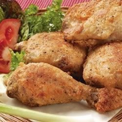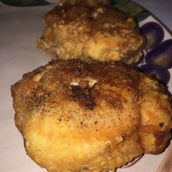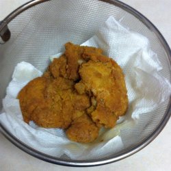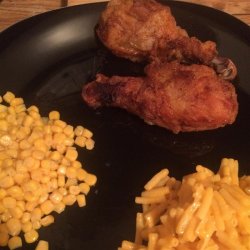 1In a large skillet, heat oil over medium heat. Salt and pepper chicken pieces to taste, then roll in flour to coat. Place chicken pieces in skillet and fry on medium heat until one side is golden brown, then turn and brown other side until chicken is no longer pink inside and its juices run clear. Drain on paper towel and serve!