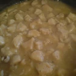 3Whisk some of the chicken broth into the flour in the bowl until smooth. Stir this into the drippings in the skillet, then stir in the remaining broth. Bring to a boil, then reduce the heat to low, and return the chicken pieces to the skillet. Simmer over medium heat until the chicken is cooked through, and the sauce has thickened. Taste, and season with additional salt and pepper if desired.