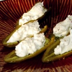 3Bake for 15 to 20 minutes, until tender but not browned. Set aside to cool. In a small bowl, mix together the feta cheese and cream cheese. When peppers are cool, spoon some of the cheese mixture into each one and serve. To store, keep in a sealed container with a little bit of olive or vegetable oil.