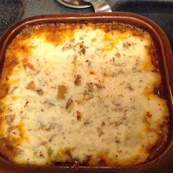 "This is a very easy shepherd's (cottage) pie that's topped with wonderful garlic and Romano potatoes. You can change the ingredients to add almost anything you like. Kids love this, and it's even better after sitting for a day. You should have most of the ingredients on hand so no trips to the grocery! You can substitute any cheese for the Romano, as well."