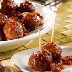 "Great for cocktail parties, casual get-togethers or anytime, these baked meatballs are especially easy to make . . . and the glaze is so good, it makes them hard to resist."