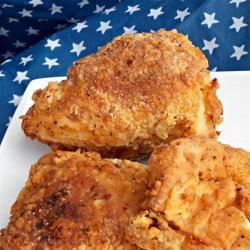 "This is my own little recipe for fried chicken. With it's double-batter crunch and the blend of seasonings, this chicken is delish. Fried in cast iron with peanut oil, this is sure to be a family dinner fave."