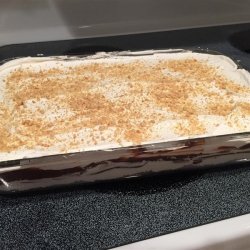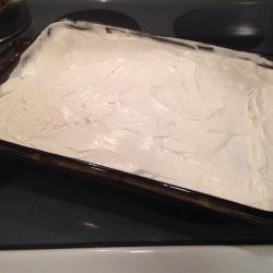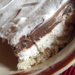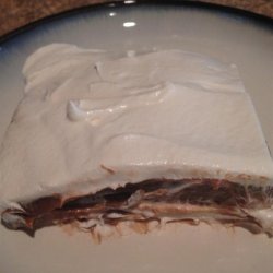 3In a large bowl, combine milk, chocolate pudding mix, and vanilla pudding mix. Beat until thick. Pour over cream cheese layer. Top with remaining whipped topping, and sprinkle with crushed chocolate bars.