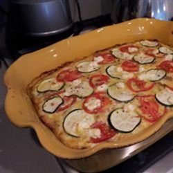 "Not your typical zucchini quiche. This fantastic medley of fresh veggies may be served either hot or cold. You can even cut it into small pieces and serve as finger food!"