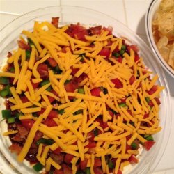 "I got this recipe for a six layer dip from my Aunt, who always makes this for parties and movie nights. The flavors of BBQ Sauce and cool ranch and bacon blend together in this perfect dip!!"