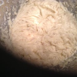 Gradually beat confectioners' sugar into butter mixture until well blended. The mixture will appear dry.