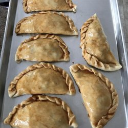 8Place the saltena on the prepared baking sheet and continue with the remaining dough and filling. Whisk the paprika into the remaining egg wash and brush the saltenas with the egg wash. Bake in the preheated oven until golden brown, 15 to 20 minutes.