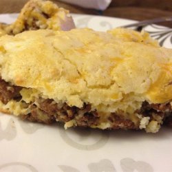 4In a small bowl, mix together baking mix, milk and eggs. Pour over cheese.