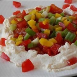 2Spread salsa in a layer over the cream cheese mixture. Combine tomato, green pepper, and green onions in a bowl and spread the vegetables over the salsa. Cover the dip with Cheddar cheese.