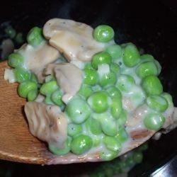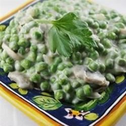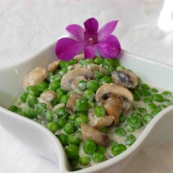2Melt butter in a medium saucepan over medium heat. Add mushrooms and onions, and cook for a few minutes, or until tender. Sprinkle flour over the mushrooms, and cook for 1 minute, stirring constantly. Gradually stir in cream, and season with salt, pepper and nutmeg. Cook, stirring until smooth and thick. Stir in peas, and remove from heat. Let stand for 5 minutes before serving.