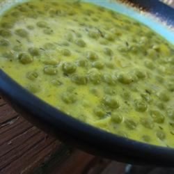 1Combine the butter, thyme, rosemary, milk, and Cheddar cheese in a saucepan. Bring to a simmer over medium-high heat and stir in the peas. Reduce heat to medium-low, and simmer, stirring until the cheese has melted and the sauce is hot, about 3 minutes.