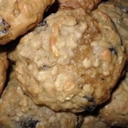 "This is a wonderful, chewy, just a little different oatmeal cookie. I have made them with many variations and all of them good. They taste the best if the raisins soak in the coffee liqueur overnight."