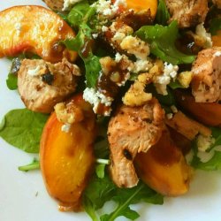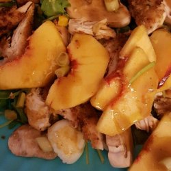 7Toss arugula and dressing together in a bowl. Divide dressed arugula among plates; top with peaches and chicken.