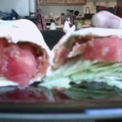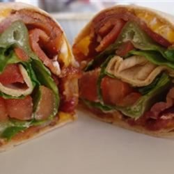 2Place 1 tortilla on a microwave-safe plate. Sprinkle tortilla with 1/4 cup cheese. Cook in microwave 1 to 2 minutes, or until cheese is melted. Immediately top with 1/4 of the bacon, lettuce, and tomato. Fold sides of tortilla over, then roll up. Repeat with remaining ingredients. Cut each wrap in half before serving.