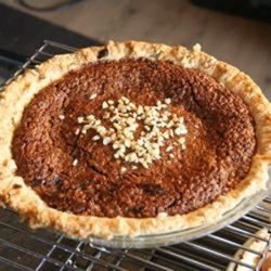 1Melt the margarine and the chocolate together, stirring until chocolate is smooth. Add eggs, sugar, salt, and syrup. Stir until everything is mixed thoroughly. Stir in walnuts. Pour into unbaked pie shell.
