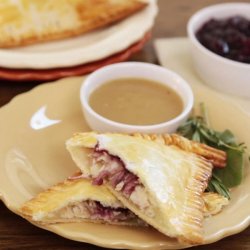 3Spread about 2 tablespoons mashed potatoes onto 4 of the pastry quarters, spreading to within 1/3-inch of the edges. Top mashed potatoes with 2 tablespoons turkey and 1 tablespoon cranberry sauce.