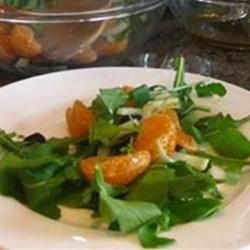 "Arugula is a delicious alternative to lettuce, and the citrus juice dressing is a delicious alternative to heavier store bought dressings. A lovely precursor to most meals, or a great stand-alone in the summer. Garnish with walnuts or sunflower seeds, if you like."