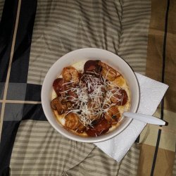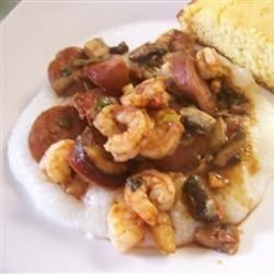 "Shrimp and Grits - with the addition of smoked sausage, mushrooms, tomatoes, onions, and Worcestershire sauce, this southern classic gets an update, taking it from a low country breakfast to fantastic dinner that's easy to make."