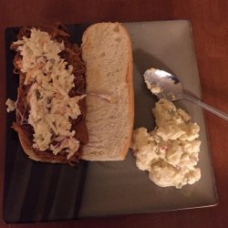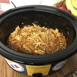 1Place chicken in a slow cooker. In a bowl, mix the barbecue sauce, Italian salad dressing, brown sugar, and Worcestershire sauce. Pour over the chicken.