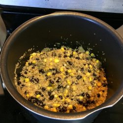 3Stir frozen corn into the saucepan, and continue to simmer until heated through, about 5 minutes; mix in the black beans and cilantro.