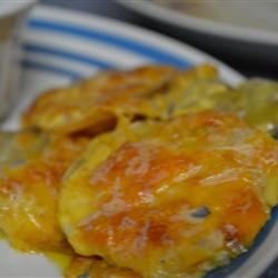 "Yukon Gold potatoes are sliced and layered with creamy sauce and Cheddar cheese before baking until tender and golden brown. So full of flavor and cheesy! Yummy!"