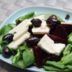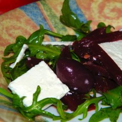 "Beets are an incredible vegetable. They're packed with tons of vitamins and antioxidants, and the dark crimson color adds a nice accent to most dishes. In this particular salad, they blend perfectly with the creamy feta cheese while balancing out the tang of kalamata olives. You'll convert even the most skeptical eaters who have always turned a nose to the wonderful world of beets with this salad topped with a citrus dressing over a bed of nutty arugula."