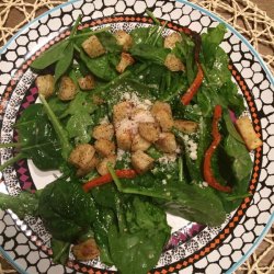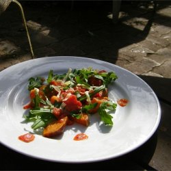 "I had this salad at a once popular New-American restaurant in Jersey City, but it's no longer in business. The restaurant used a house-made Romesco dressing, but I made my own roasted red bell pepper dressing that also complements the peppery rocket leaves, also known as baby arugula. It makes a great appetizer or a side to a nice entree."