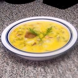 4When the soup has thickened slightly, stir in the white wine if using. Mix in the lemon juice, smoked salmon and corn. Cook over medium heat until hot but not boiling. Ladle into soup bowls to serve.