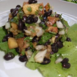 1Mix peaches, red bell pepper, onion, and jalapeno pepper together in a bowl; gently fold in black beans and cilantro. Season with cumin and sea salt. Fold in avocado and drizzle salad with lime juice and olive oil. Let stand for 5 to 10 minutes before serving.