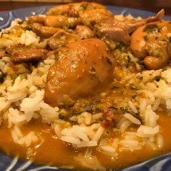 1Place chicken on a plate. Sprinkle the green onion, cilantro, garlic, onion, salt and pepper over it. Cover, and marinate for 30 minutes.