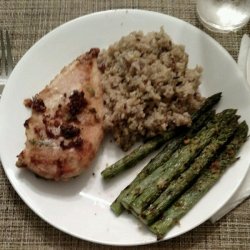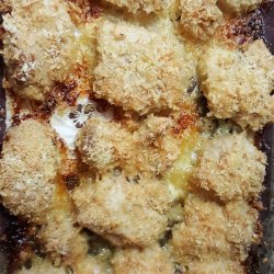 2In a shallow glass dish or bowl, combine the crushed garlic with the melted butter or margarine. In another small bowl mix together the bread crumbs, cheese, parsley, salt and pepper. Dip chicken pieces into garlic butter, then into crumb mixture to coat.