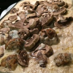 "These tasty meatballs include green peppers, onions and Italian-style bread crumbs baked in a golden mushroom sauce. The recipe is a creation of my own."