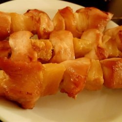 1In a shallow glass dish, mix the soy sauce, brown sugar, sherry, sesame oil, ginger, and garlic powder. Stir the chicken pieces and pineapple into the marinade until well coated. Cover, and marinate in the refrigerator at least 2 hours.