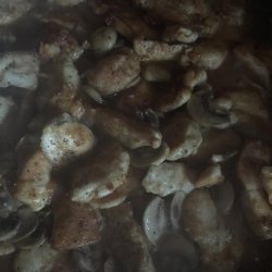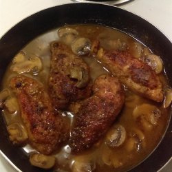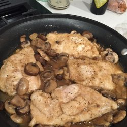 2Heat olive oil and butter in a large skillet over medium heat. Fry the chicken in the skillet for 2 minutes, or until lightly browned on one side. Turn chicken over, and add mushrooms. Cook about 2 minutes, until other side of chicken is lightly browned. Stir mushrooms so that they cook evenly.