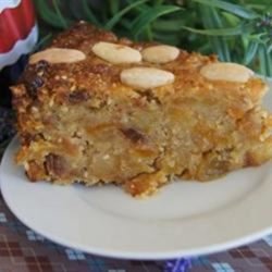 2In a large bowl combine ground almonds and fruits. Dredge with one cup flour.