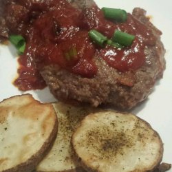 3Return skillet to medium heat. Stir tomato sauce, green onions, brown sugar, Worcestershire sauce, and yellow mustard together in the skillet. Gently lie the patties into the sauce; bring liquid to a boil, reduce heat to medium-low, and simmer until the patties are very firm, hot, and grey in the center, about 10 minutes more. An instant-read thermometer inserted into the center should read 160 degrees F (70 degrees C).
