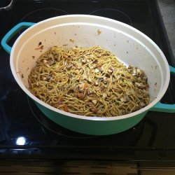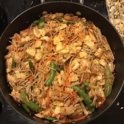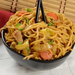 2In the emptied pan combine the onion, cabbage, and carrots. Stir-fry until cabbage begins to wilt, 2 to 3 minutes. Stir in the remaining soy sauce, cooked noodles, and the chicken mixture to pan and mix to blend. Serve and enjoy!