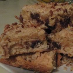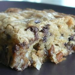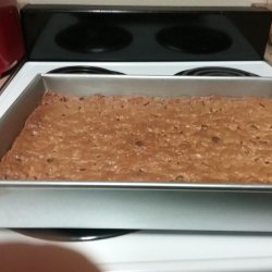 2In large bowl, cream the shortening, brown sugar, eggs and vanilla extract. Slowly blend in flour, baking powder, and salt. Mix until well blended. Fold in chocolate chips, walnuts and coconut. Spread the mixture evenly in pan.