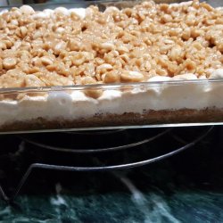5To Make Topping: In a large saucepan over low heat combine corn syrup, 1/4 cup butter or margarine, 2 teaspoons vanilla and peanut butter chips until smoothly melted, stirring constantly. Remove from heat and stir in cereal and nuts. Immediately spoon over marshmallows, spreading to cover. Refrigerate until firm. Cut into 36 bars.