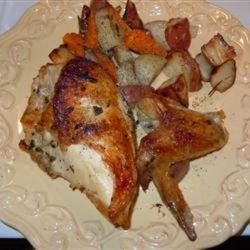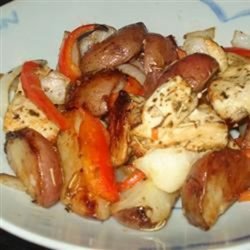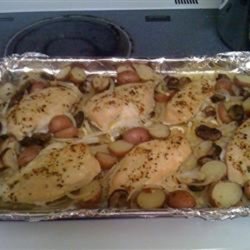 4Arrange the breasts close together on the foil-lined pan. Place carrots and red potatoes in a layer around chicken and fold up edges of foil approximately 1 inch. Drizzle carrots and red potatoes with olive oil, salt, and pepper.