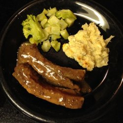 3Meanwhile, place rib pieces into a large bowl, and season to taste with garlic salt and pepper. Toss with a little flour to coat, then toss with ginger sauce. Place ribs onto prepared baking sheet in an even layer.