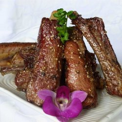 4Bake in preheated oven for 45 minutes, then turn ribs over, and bake an additional 45 minutes, until tender. Sprinkle with sesame seeds to serve.