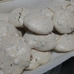 2Beat the egg whites with an electric mixer until light and frothy; beat in sugar, about 1 tablespoon at a time, until incorporated. Continue beating until the mixture is thick and shiny, 1 to 2 more minutes. Lightly fold in the walnuts. Drop by heaping teaspoonful onto the prepared baking sheet.