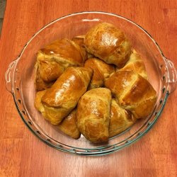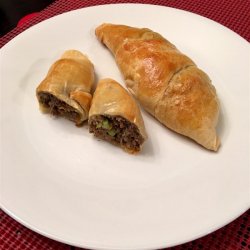 4Divide each package of crescent rolls in half to make 4 squares; press perforations to seal each piece into a solid sheet of dough. Place dough squares onto an ungreased baking sheet and gently form each piece into a rectangle. Spoon 1/4 of meat mixture into the center of each rectangle, bring 2 opposite long edges together in the center, and overlap. Pinch edges of dough to seal into filled packets. Brush with beaten egg.